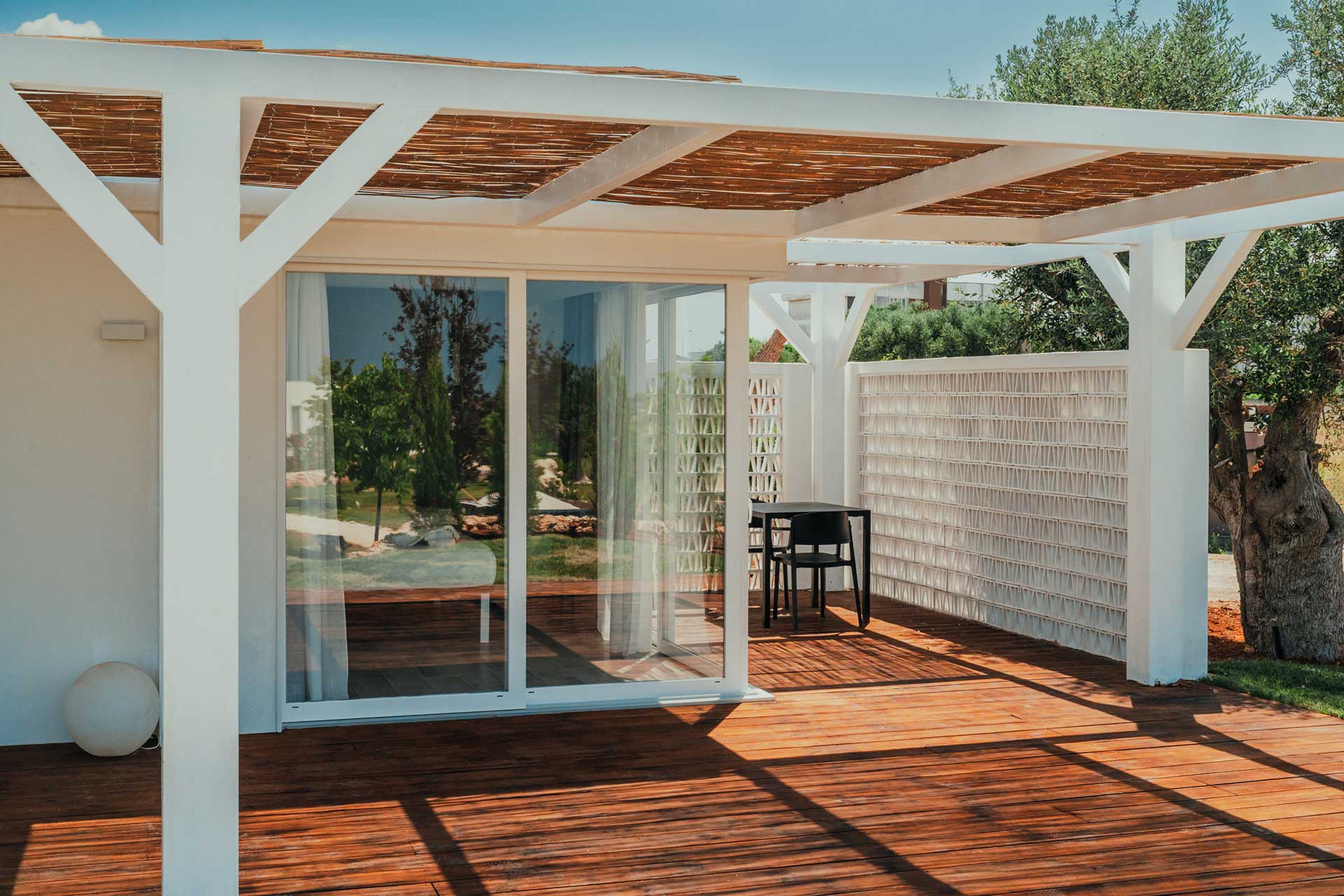 4 single houses with large bathroom, private garden with jacuzzi, air conditioning, superfast wi-fi and in-room breakfast. You will feel pleasantly pampered.
